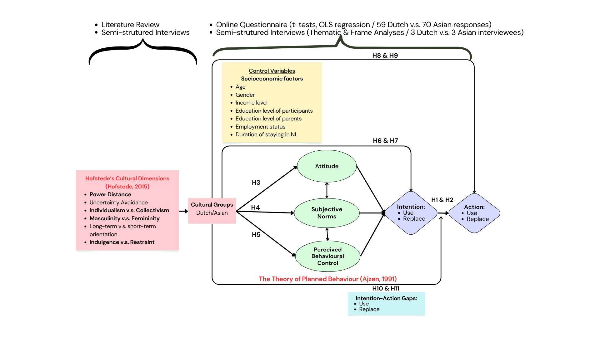 Applied the Theory of Planned Behaviour (TPB) to model psychological drivers (Attitudes, Subjective Norms, PBC) and Hofstede’s Cultural Dimensions to assess cultural influences.